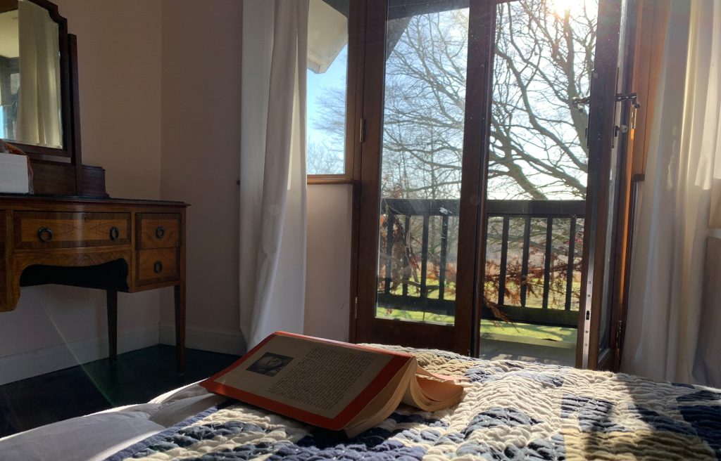 This is a private room inside our Shepherds Hut for the price of a shared room. It is warm and smells of cedar, there is electricity running to it and a double bed with a small desk. The bathroom is inside the house, a stones throw from the front of the hut.